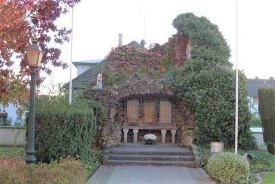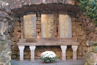 Kriegerdenkmal in Form einer Grotte bei der katholischen Kirche Sainte-Croix. Drei Steintafeln geben die Namen der Toten beider Weltkriege wieder. Eine Szene mit zwei betenden bzw. anbetenden Frauengestalten schließt das Ensemble ab.