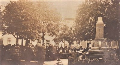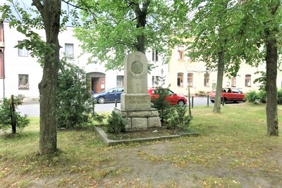 Das Denkmal für die Opfer des Ersten Weltkriegs steht schräg gegenüber dem Haupteingang der Kirche St. Laurentius. Das Denkmal wurde ursprünglich bereits 1911 als Hommage an Kaiser Franz Joseph I. gebaut. Nach der Gründung der Tschechoslowakei wurden die Hinweise auf die alte österreichisch-ungarische Monarchie an den meisten Stellen entfernt. Die Büste des Monarchen wurde am 19. Mai 1922 von der örtlichen Soldatenvereinigung entfernt. Der Rest des Denkmals wurde zu einem Denkmal für die Opfer des Ersten Weltkriegs errichtet. Anstelle des Kaisers blickte nun ein Bronzeadler von der Spitze des Denkmals herab. Auf einem Sockel aus Buckelquadern erhebt sich ein Quader mit Inschriften. Darüber eine Art Grabstein, der oben abgerundet ist. Dieser entspricht nicht mehr dem Original. Die feierliche Enthüllung des neu errichteten Denkmals fand am 9. Juni 1926 statt. Das Mahnmal erinnerte an 92 Kriegsopfer. Insgesamt kostete der Krieg jedoch 104 einheimischen Männern das Leben.