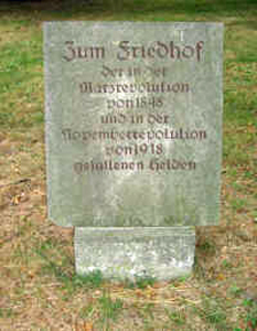 Gedenkstein für die 249 Märzgefallenen von 1848. Einige Grabplatten sind noch vorhanden.