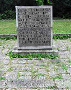ihr selber euch errichtet - Nur ernste Mahnung spricht aus diesem Stein / Dass unser Volk niemals drauf verzichtet wofür ihr starbt - Einig und frei zu sein.