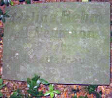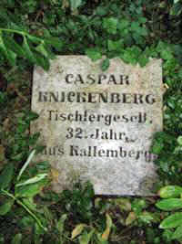 Linkerhand drei Grabplatten, von denen die Mittlere die Nachnamen der Toten auflistet.