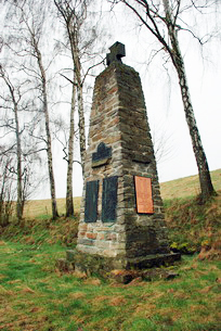Auf einer Anhöhe über dem Dorf, in der Nähe des Bahnhofes steht das Denkmal.