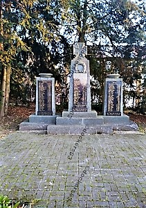 Drei Stelen für die Gefallenen und Vermissten beider Weltkriege sowie ein Kriegsgrab auf dem katholischen Friedhof.