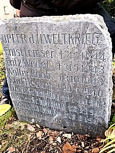 der Opfer des Ersten Weltkrieges vertieft angebracht. Für einen der Gefallenen (Paul Dobermann)