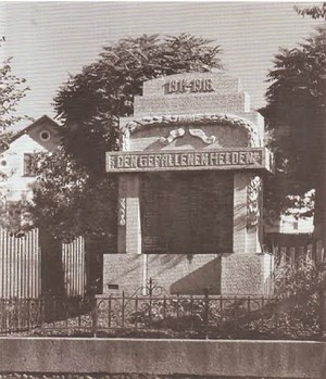 Das Denkmal für die Opfer des Ersten Weltkriegs stand auf dem Dorfplatz gegenüber der Schule. Es wurde am 9. Juli 1922 feierlich enthüllt. Die Rede wurde vom Habersbirker Pfarrer Christof Ewen gehalten. Der Entwurf und die Ausführung stammen vom Steinmetz Johann Wolf aus Heinrichsgrün. Es war ein relativ großes Steinmonument, das auf einem Sockel stand, mit Seitensäulen und einem gestuften pyramidenförmigen oberen Abschluss. Eine Girlande aus Lorbeerzweigen war über der Widmungsinschrift angebracht. Sie erhob sich aus der Mitte der Seitenpfeiler und bildet oben einen Bogen mit herabhängenden Bandenden in der Mitte. Das Ganze umgab eine große Tafel mit Daten zu den Opfern des Ersten Weltkrieges. Das Gesamtensemble war mit einem eisernen Zaun umgeben. Die Namen konnten nicht eruiert werden.