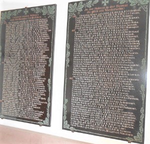Tafeln befestigt mit je einer Inschrift der Gefallenen und Vermissten des Ersten Weltkrieges.
