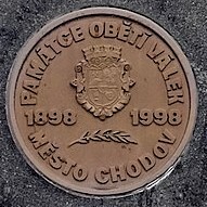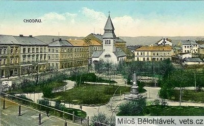 Das Chodauer Denkmal für die Opfer der Kriege des 19. Jahrhunderts (1848-1849; 1859; 1864; 1866; 1878) wurde am 25. September 1898 anlässlich des 50. Jahrestages der Thronbesteigung von Kaiser Franz Joseph I. enthüllt. Es befand sich im Park in der Nähe der evangelischen Kirche, die erst drei Jahre später erbaut wurde. Die Errichtung des Denkmals wurde von der Stadt Chodau sowie von den Gemeinden Münchhof (Mírová), Poschetzau (Božičany), Granesau (Chranišov), (jetzt Wüstung) Hunschgrün (Podhoří), Wintersgrün (Vintířov) und Doglasgrün (Vřesová) sowie von den Vereinen "Vaterländisches Kriegskorps des Erzherzogs Otto" und "Militär-Veteranen-Verein Freiherr von Weber" bezahlt. Die Stadt Chodau steuerte 2.000 Gulden bei, und auch die obengenannten Gemeinden und Verbände steuerten entsprechende Summen bei.