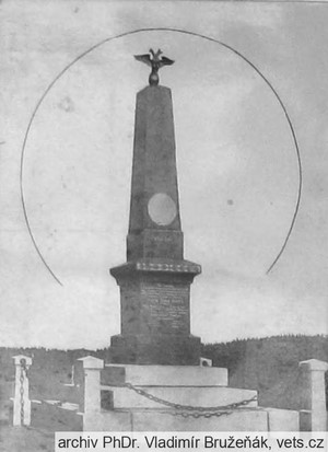 Das Denkmal hatte die Form eines strengen hohen Obelisken aus poliertem Granit, der mit der Skulptur eines zweiköpfigen österreichischen Adlers gekrönt war, der auf einem Ball saß. In der Mitte der Vorderseite des Obelisken befand sich ein kreisförmiges Porträt des Kaisers mit einer heute unbekannten Widmung und einer Inschrift. Auf der Rückseite waren die Namen der Gefallenen in den Kriegen eingemeißelt. Das ganze Denkmal war von Steinsäulen mit einer Kette umgeben.