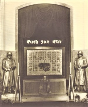 Ein Denkmal für Opfer des Ersten Weltkrieges stand in der katholischen St.-Laurentius-Kirche von Chodau gegenüber dem Eingang und betraf gefallene Katholiken. Es hatte die Form eines großen gerahmten Bildes vom jungen Malers Rudolf Zindl mit Fotografien und der Zeichnung eines Soldaten, der sich über einen gefallenen Kameraden beugt. An den Seiten standen Statuen von Soldaten in Militärmänteln, mit Helmen und Gewehren. Die Statuen sollten eine Art Ehrenwache für den Frieden der Gefallenen sein und waren das Werk des ortsansässigen Bildhauers Alois Zuber und des Künstlers Prašil.