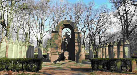 Anmerkung: Das Ehrenmal mit dem umgebenden Ehrenfriedhof liegt gegenüber dem Friedhof III im