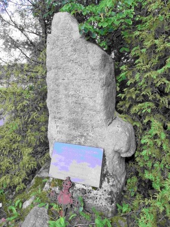 Denkmal für die Gefallenen des Ersten Weltkriegs: Aufgerichteter Steinblock mit EK-Zeichen im oberen Bereich.