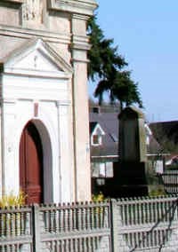 Rechts neben der Kirche steht das gut erhaltene Denkmal für die Gefallenen des Ersten Weltkrieges. Dazu sind die Kriegstoten und die Opfer der Vertreibung von Dölzig und Neuscheune aus 1939-1945 erfasst.