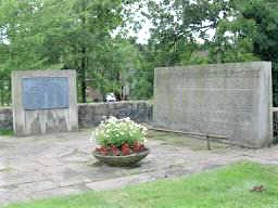 Der rechte Gedenkstein trägt eine weitere Inschrift sowie die Namen der Opfer aus der Gemeinde.