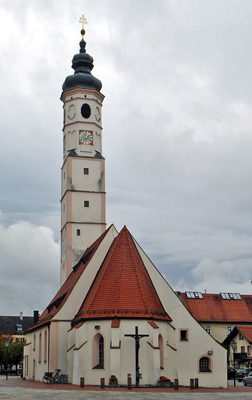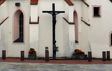 Gedenken ohne Namen für beide Weltkriege an der Rückseite der Marktirche St. Veit.