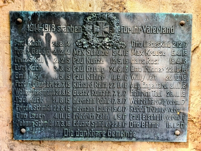 Für den Ersten Weltkrieg ist eine Bronzetafel angebracht. Diese enthält