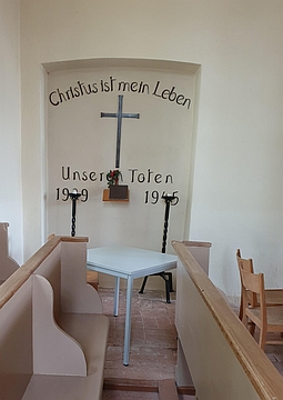In der Kirche ist links neben dem Altarraum das "Gedenkbuch für die Gefallenen u. Vermißten der Evangelischen Kirchengemeinde Dossow; Ewigkeits-Sonntag, d. 24. November 1963" ausgelegt. Darin sind die Namen der Kriegstoten verzeichnet, wobei für jede Person eine Seite beschrieben ist. Eine Seite ist kaum mehr lesbar. Die Namen sind zum Teil mit weiteren Angaben ergänzt. Diese sind in den entsprechenden Spalten oder in der Spalte Bemerkungen angegeben.