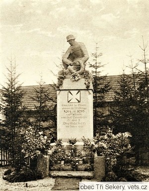 Das Denkmal für die Kriegsopfer steht nicht mehr, es wurde nach 1945 zerstört. Es stand im Zentrum des Dorfes bei der Kirche und wurde am 20. September 1925 eingeweiht, die Festrede hielt Pfarrer Dinter, der auch das Denkmal weihte. Der Kaufmann und Vorsitzende der Denkmalkommission Wenzl Weber aus Nr. 16 und der Vertreter des Dorfes Anton Lanzendörfer sprachen ebenfalls. Die Kosten beliefen sich auf 19.000 Kronen, die durch Spenden und öffentliche Sammlungen aufgebracht wurden. Die Zeichnung entwarf Adolf Krader aus Eger. Der Bildhauer Hans Höllering mit seiner Firma führte die Arbeit aus und errichtete das Denkmal.
