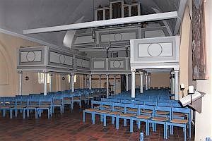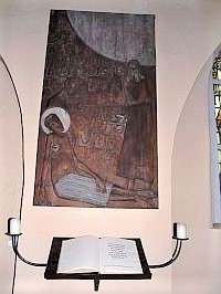 Gedenkbuch in der Kirche. 61 Namen mit Geburts- und Todesdatum, geordnet nach Orten.