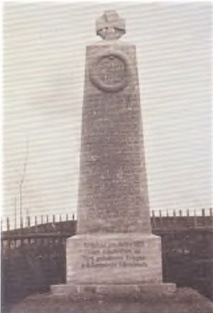 Die Vorderseite des Denkmals trug 17 Namen der Gefallenen unter einem Kranz mit Jahreszahl. Am Sockel war die Widmung eingemeißelt und das ganze Denkmal wurde von einem Eisernen Kreuz gekrönt.