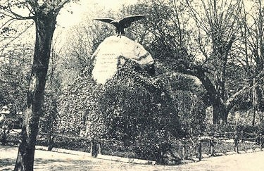 Ehemaliges Denkmal für die Gefallenen der Kriege 1864, 1866 und 1870/71 an der Promenade: Feldsteinhaufen mit aufgesetztem großem Findling und krönendem Adler. Das Denkmal wurde nach 1945 abgerissen.