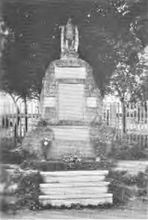 Das Denkmal für die Opfer des Ersten Weltkriegs wurde am 30. Juli 1922 auf dem Übungsgelände des Deutschen Turnvereins, etwa 600 Schritte von der Staatsgrenze entfernt, eingeweiht. Die Festrede wurde von Dietwar Lorenz Winkler gehalten und die Gesamtkosten der Produktion betrugen 4.000 Kronen.