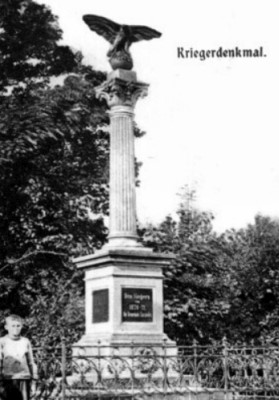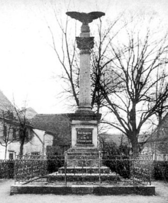 Ehemaliges Denkmal für die Gefallenen des Krieges 1870/71 am Plan: Abgestufter Quader mit eingelassenen Widmungs- und Namenstafeln. Darauf eine klassische Säule mit krönendem Adler. Das Denkmal wurde 1946 abgerissen.