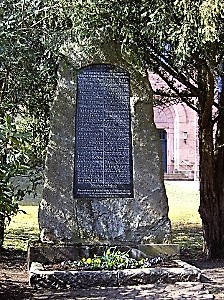 Denkmal zwischen der Kirche und dem Park, in einer Baumgruppe.