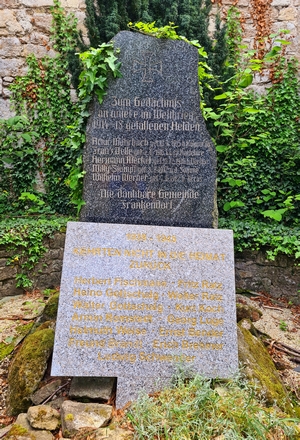 wurde nach der politischen Wende eine Platte gestellt, auf der die Opfer des Zweiten Weltkrieges genannt werden.