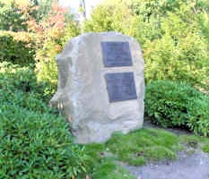 Kriegsgräber und Gedenkstätte auf dem Friedhof von Fredenbeck: Steinkreuze für die Kriegsgräber, Findling mit zwei Bronzetafeln für NS-Opfer.