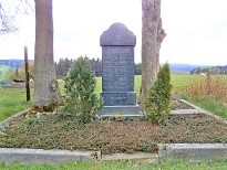 Das Denkmal für die Opfer des Krieges wurde 1929 am Ortsrand in der Nähe des damaligen Gehöfts Nr. 53 errichtet und eingeweiht. Es ist ein schlicht gestaltetes Denkmal in Form einer rechteckigen Steinstele aus dunkel geschliffenem Stein, der auf einem Granitsockel steht. Der obere Teil mit halbrundem Abschluss ist mit einem Eisernen Kreuz und Eichen- und Lorbeerzweigen geschmückt. Darunter befindet sich der Hauptteil mit der Widmungsinschrift und 41 Namen der Gefallenen und Vermissten, nach Jahren geordnet. Die Umgebung des Denkmals wurde eingezäunt und in der Nähe wurden Bäume gepflanzt, die jedoch den ursprünglichen Zaun zerstörten.