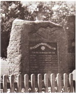 Das Denkmal für die Kriegsopfer des Dorfes befand sich in der Nähe des Schulgebäudes. Es wurde am 31. Juli 1927 in Anwesenheit des Egerer Abgeordneten Josef Mayer enthüllt. Es hatte die Form einer grob bearbeiteten Granitstele, die mit einem Steinkreuz gekrönt war. Darunter, im oberen Teil der Stele, befand sich das Relief eines Schwertes, das einen Militärhelm kreuzte. Auf der Tafel befanden sich ein Eisernes Kreuz, die Widmung und die Namen von 22 gefallenen Soldaten. Das Denkmal verschwand zusammen mit dem Dorf nach 1945.