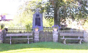 Neben dem Rathaus, in einem eingezäunten Platz, befindet sich ein Steinfels auf einem Sockel, an dem eine Metalltafel mit den Namen der Gefallenen des Ersten Weltkriegs befestigt ist.