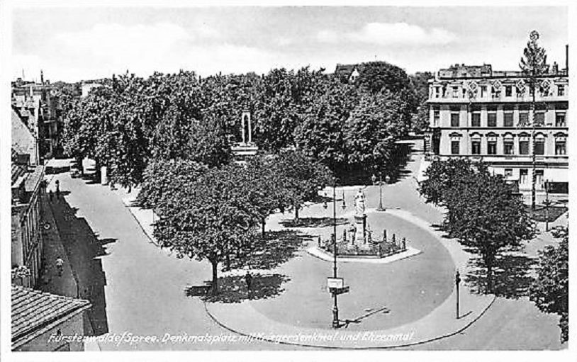 Von 1933 bis 1945 war der Begriff Denkmalplatz üblich, der ursprünglich nur für die Platzspitze in Gebrauch war. 1926/27 erbaute man vor den Kaiserbüsten ein Denkmal für die Gefallenen des 1. Weltkriegs. In der Mitte des Backsteinbauwerks stand eine Pyramide aus Granaten. 1945 wurden die Granaten entfernt und das Denkmal nun den Opfern des Faschismus gewidmet. An der westlichen Seite des Platzes fanden Soldaten der Roten Armee ihre Ruhestätte, die in den letzten Kriegstagen um Fürstenwalde gefallen waren. Etwa zu dieser Zeit wurden auch die Kaiserbüsten entfernt.