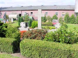 Grabanlage auf dem Friedhof der Kirche: In einer geschlossenen kleinen Anlage ruhen drei Tote aus dem Zweiten Weltkrieg.