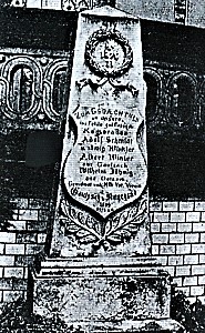 Der Sandstein-Obelisk ist heute völlig verwittert und alle Inschriften und auch das Eiserne Kreuz sind verschwunden.