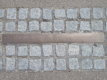 Zudem ist unweit der besagten Tafel eine außergewöhnliche „Stolperschwelle“ in den Gehweg eingefügt worden.