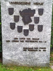 Außerhalb des Friedhofs an der Straße zur Ostseite befindet sich eine Steintafel die eine bronzene Landkarte und ebensolche Wappen von Städten im Egerland (Böhmen) zeigt, zum Andenken an die Heimat der Sudentendeutschen im Egerland.
