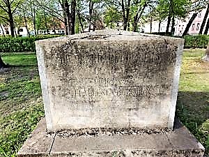 Denkmal für die Gefallenen des Ersten Weltkriegs am Zinzendorfplatz in der Ortsmitte. Inschriften sind kaum noch entzifferbar.