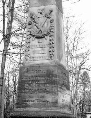 Auf dem einzigen auffindbaren Foto des Denkmals kann man nur die Namen der Gefallenen der Schlacht bei Wörth auf der Vorderseite ablesen.