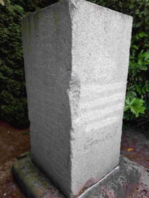 Denkmal für die Gefallenen des Ersten Weltkriegs: Einfache niedrige viereckige Stele an einer Seitenstraße des Ortes.
