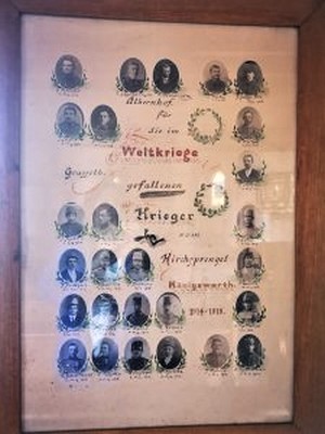 In der Kirche von Königswerth hängt eine Gedenktafel für die Opfer des Ersten Weltkrieges aus Grasseth und Albernhof. Die Tafel enthält die Familiennamen und die Vornamen nur mit dem Anfangsbuchstaben.