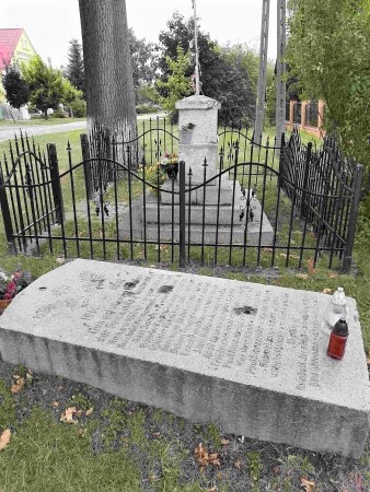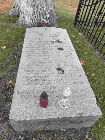Das Denkmal hat einige Einschüsse in den Inschriften. Dadurch können nicht mehr alle Daten abgelesen werden.