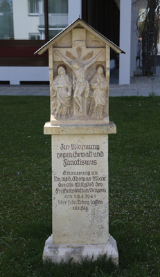 Das Denkmal steht in Grünwald vor dem Rathaus. Am 28. April 1945 stehen die Amerikaner vor München bzw. Grünwald.