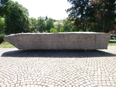 Der auffällige Gedenkstein erinnert an die Opfer von Krieg und Gewaltherrschaft. Ursprünglich standen