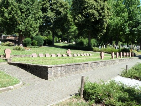 Friedhof. Namen der Gefallenen auf fünf Bronzetafeln an der Außenseite der Aussegnungshalle. Zudem kleine Kriegsgräberstätte für Tote des Zweiten Weltkriegs in der tiefergelegenen Terrasse unterhalb der Aussegnungshalle und ein privates Gedenken auf einem Familiengrab.