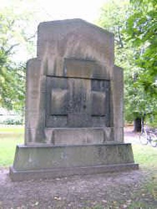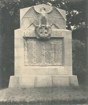 Am Aufsatz war ursprünglich das Relief eines Adlers und EK-Zeichens im Ehrenkranz angebracht, das nach 1945 abgeschlagen wurde. Die Widmung wurde ebenfalls herausgemeißelt.