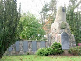 Nach dem Zweiten Weltkrieg wurde im Halbrund dahinter eine Feldsteinmauer errichtet, auf der 10 graue Granittafeln die Namen der 139 Kriegsopfer tragen. Eine weitere Tafel in der Mitte trägt eine Inschrift.