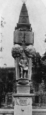Ehemaliges Denkmal für die Gefallenen des Infanterie-Regiment „Prinz Louis Ferdinand von Preußen“ (2. Magdeburgisches) Nr. 27: Abgestufte Stele mit reich verziertem Oberteil, in dem ein Trommler aus Explosions-Strahlen und Wolken schreitet. Darüber sind weitere Verzierungen, die von einer Spitze mit dem Monogramm des Regiments gekrönt wurden. Das Denkmal verschwand nach 1945.