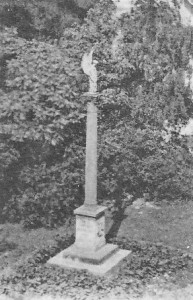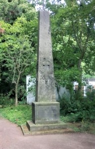 Im Jahre 1814 errichteten Handwerker des Zimmergewerks an der Lehmbreite in Halle ein Denkmal für Opfer der Befreiungskriege von 1813. Er wurde am 2. August 1814 eingeweiht. Die Straße hieß später Königstraße, dann Rudolf-Breitscheid-Straße und heute Am Leipziger Turm. Der Obelisk des Denkmals bestand aus einem Eichenstamm, der mit Ölfarbe überzogen war und dadurch ein sandsteinfarbenes Aussehen bekam. Das Denkmal wurde im Laufe der Jahre (z. B. 1833 völlig neu, 1863) mehrfach renoviert und im Jahre 1942 im Zuge von Bauarbeiten für einen Luftschutzbunker abgetragen. Zusammen mit den Gebeinen der Toten wurde der Obelisk auf dem Gertraudenfriedhof neben den Kriegsgräbern des Ersten Weltkrieges neu errichtet. Das Denkmal stand ursprünglich auf einem kleinen Hügel und war mit einem Eisengitter umgeben.