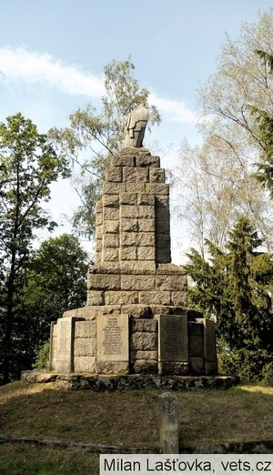 Das Denkmal für die Kriegsopfer wurde am 12. August 1923 auf dem Kalvarienberg im südlichen Teil des Dorfes eingeweiht. Die Festrede hielt der Schulleiter Benno Schwager aus Kropitz. Der Urheber des Entwurfs ist ein bedeutender akademischer Bildhauer aus Eger Johann Adolf Mayerl (1884-1954). Der Bau selbst erfolgte durch den Steinmetz Andreas Lugert (1868-1927). Die zu diesem Zweck ausgewählte Kommission war für die Realisierung des Denkmals verantwortlich, die Gesamtkosten seines Baus beliefen sich auf 28.500 CZK. Das Land auf dem Kalvarienberg wurde vom örtlichen Gutsbesitzer Kurt Wilhelm von Helmfeld unentgeltlich zur Verfügung gestellt.